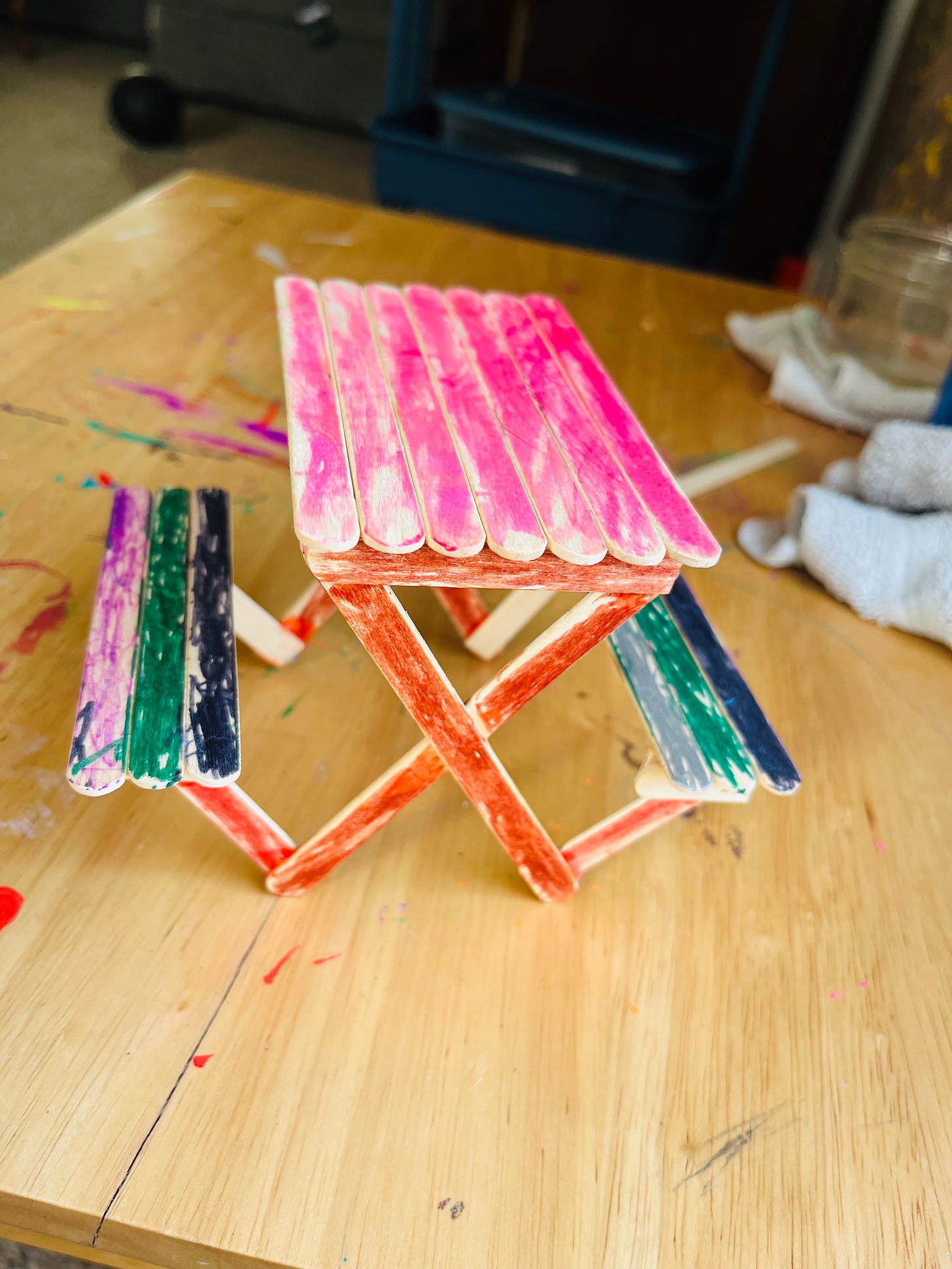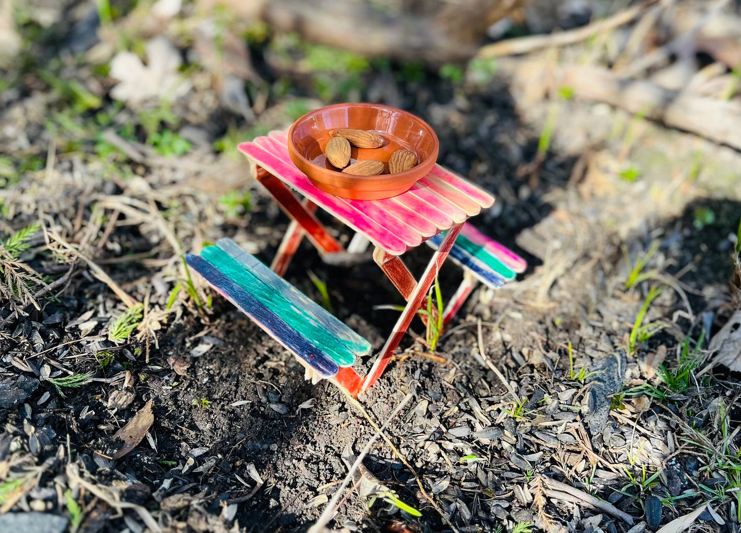 Another art project that took up several days this week was creating a picnic table for squirrels out of popsicle sticks. He loves feeding the squirrels in our neighborhood (probably not the best thing to do?), so they thought it would be fun to try to make a little table to set almonds out on to then watch the squirrels come grab ‘em and squirrel them away. I think it turned out so cute.