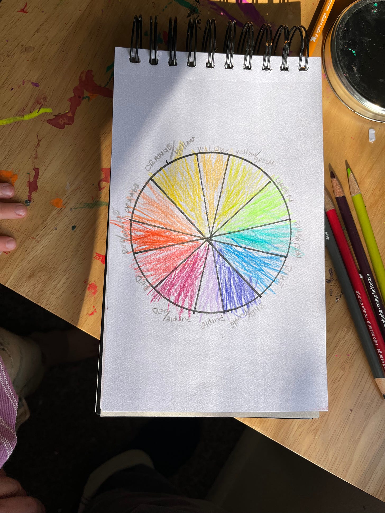 After they were done with the first color wheel, he wanted to do an even bigger one, so they made a twelve-color wheel next. Once again, he picked out all of the colors for each section by himself and colored them in. It’s not perfect, but it’s a wonderful first go at a more advanced color wheel. I have a feeling they’ll be making even more of these in the future.