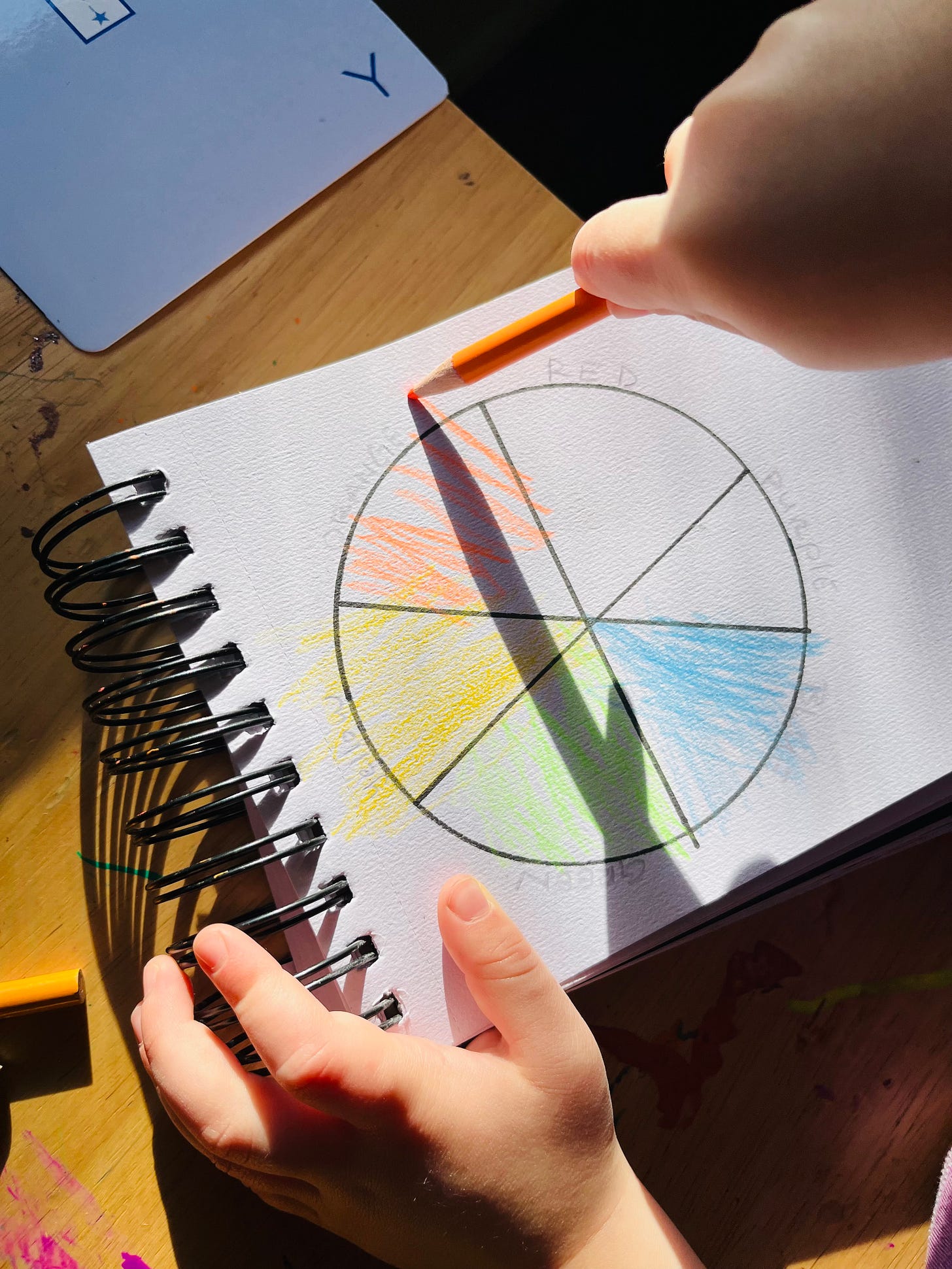 Every day after breakfast, my husband and our 3yo try to do an art project of some sort. My husband has a degree in painting and drawing so he absolutely loves every second of this time with our son. This week they created several color wheels.